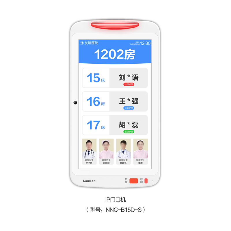 ? 采用15.6英寸高清液晶顯示屏,自帶門燈一體化式設計,嵌入式安裝在病房門口。