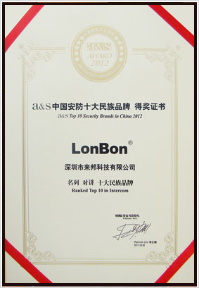 新聞中心 2012年12月2日,中國安防行業(yè)知名雜志《安全&自動化》主辦的2012年度“中國安防十大民族品牌”評選頒獎活動在北京隆重舉行。作為安防行業(yè)最具權(quán)威的安防品牌評選中,來邦在全國數(shù)百家安防企業(yè)中脫穎而出,繼2004年頒獎以來,來邦連續(xù)九年蟬聯(lián)“中國安防十大品牌”獎項(xiàng)。