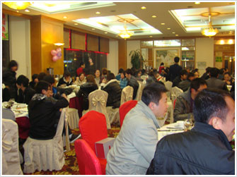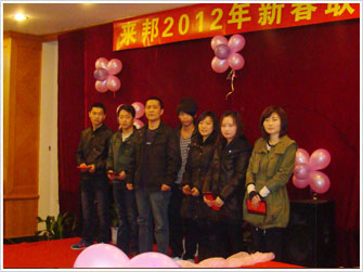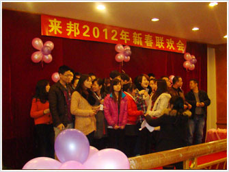 聯歡會上,首先由公司總經理潘曉亭致詞,先是對公司2011年總體工作做了總結報告,并回顧了過去一年來的辛勤工作以及取得的良好業績,同時也為大家描繪了公司在新的一年里美好規劃藍圖。之后,公司領導為大家送上了節日的問候。周振華廠長為表現突出的生產部員工頒發了優秀員工獎(共10名)、勤奮獎(共6名)、全勤獎(共3名)。現場氣氛更是熱烈,同時也擺上了晚宴,最讓人期待的更是抽獎環節。大家在聽到總經理宣布抽獎時,現場氣氛更是一度高漲,一些員工更是壓抑不住自己的激動心情,一片歡呼。隨后大家按照規則每人抽取一張牌,最后由總經理宣布三等獎(共24名)、二等獎(共8名)、一等獎(共4名),并頒發獎金。在接近頒獎尾聲,聯歡會也漸漸地圓滿的落下了帷幕。
