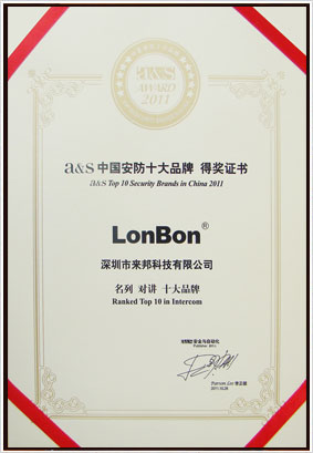 新聞中心 2011年10月28日,由A&S舉辦的2011年度“中國安防十大品牌”頒獎活動在深圳隆重舉行。來邦在全國223個對講品牌中脫穎而出,這是來邦連續八年蟬聯“中國安防十大品牌”獎項。