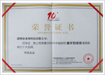 下圖為來邦榮獲2009中國安防最具影響力十大品牌獎牌及榮譽證書: