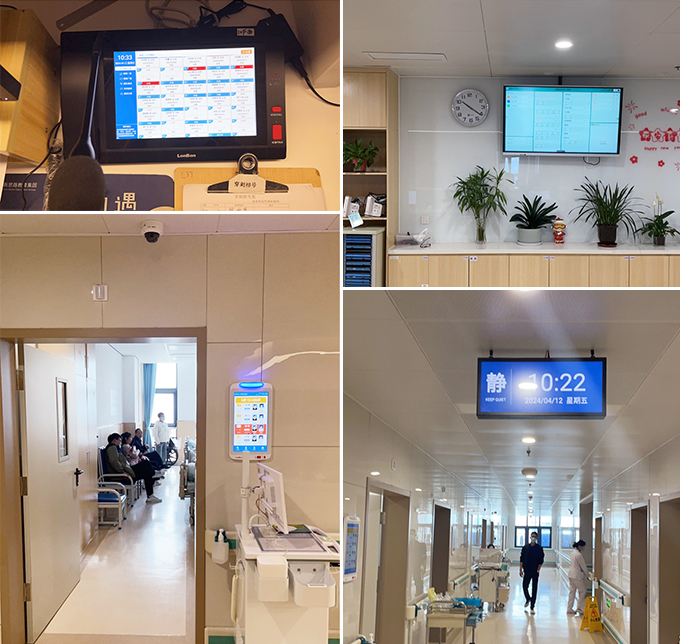 病房門口,具有信息交互顯示的門口機可清晰地顯示患者的基本診療信息、護理等級、責任醫生及責任護士。智能液晶走廊屏,可直觀顯示呼叫患者的病房、床位號,指引護士第一時間前往處理。