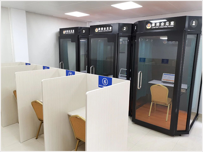 智慧監(jiān)室,在生物識別技術(shù)智能應(yīng)用的加持下,被監(jiān)管人員可通過監(jiān)室智能交互終端,實現(xiàn)信息采集驗證、信息查詢、自助點名等以及在線購物、預(yù)約申請、一鍵報警、可視對講等多項智能服務(wù);民警可借助具有信息交互功能的監(jiān)倉門口機,實現(xiàn)夜崗處警、巡更簽到以及查看監(jiān)室概況、智能電教等多項智能功能操作;家屬會見區(qū),可通過人證合一、自助登記實現(xiàn)會見排隊叫號與會見對講,并能通過語音識別技術(shù),將被監(jiān)管人員和家屬的談話內(nèi)容實時轉(zhuǎn)換成文字,并能對出現(xiàn)的關(guān)鍵詞進行智能檢測報警提示,提升會見智能安全管控水平;律師遠(yuǎn)程會見中心,可支持辯護律師或家屬與被監(jiān)管人員遠(yuǎn)程視頻會見、以及展示相關(guān)訴訟材料和會見筆錄等,并能對會見視頻畫面錄音錄像,大大提升監(jiān)所會見效率和便捷水平。