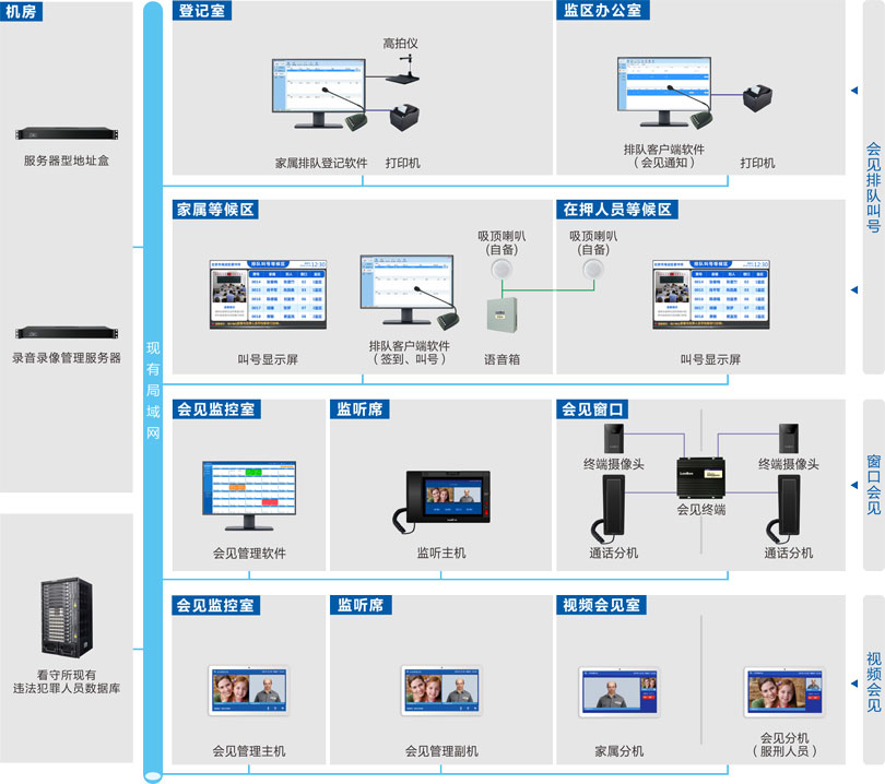 會見通知:可向監(jiān)區(qū)的排隊客戶端軟件發(fā)出會見通知消息,提醒民警帶人會見。