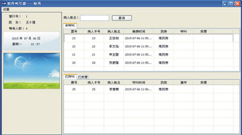 窗口液晶屏顯示:可顯示取藥患者姓名、取藥狀態、取藥窗口號(或輸液患者的姓名、輸液狀態、輸液室號)等信息。