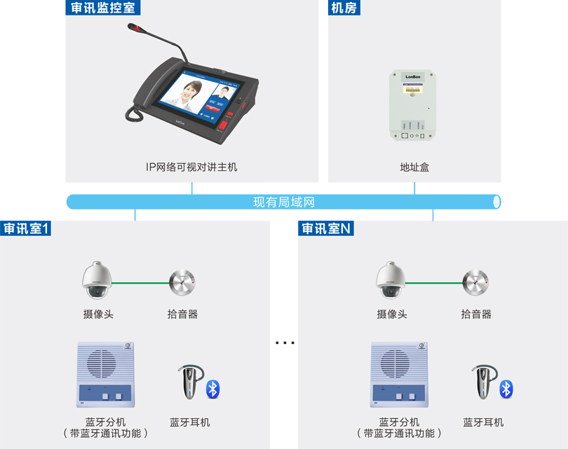 審訊監控:主機可監聽審訊室分機通話,同時可查看與審訊室分機綁定的IPC攝像頭畫面,將聲音和視頻監控畫面整合到一起。