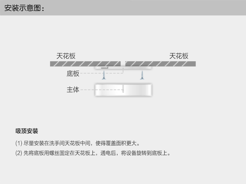? 安裝在洗手間天花板。采用4G Cat.1通信技術(shù),利用運(yùn)營商基站網(wǎng)絡(luò)傳輸,出廠內(nèi)置通信卡、即買即用,IP67防水設(shè)計(jì)。