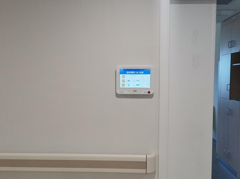 4)病床分機一體式設計,大屏顯示,滿足呼叫對講和電子床頭卡功能。